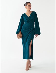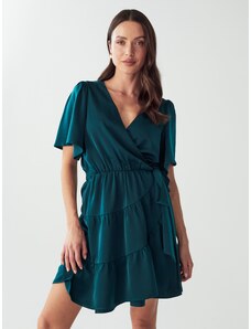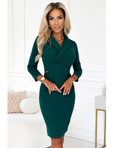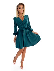 Numoco 237-5 KELLY Elegantní šaty s obálkovým výstřihem - ZELENÉ