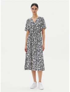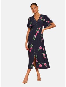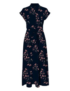 Numoco MATILDE Rozšířené midi šaty se zavinovacím výstřihem a krátkým rukávem - modré s růžovými květy 425-14