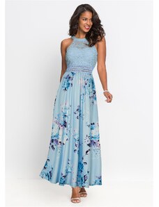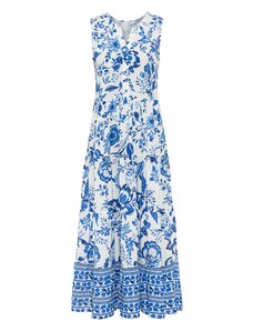 Blancheporte Dlouhé kreponové šaty s potiskem modrá/béžová