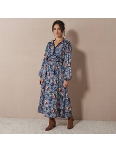 Blancheporte Dlouhé šaty se širokými rukávy a s potiskem květin modrá