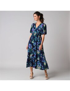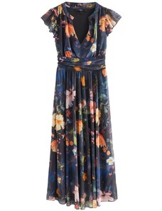 Blancheporte Dlouhé šaty s výstřihem do V a potiskem květin nám. modrá/vícebarevná
