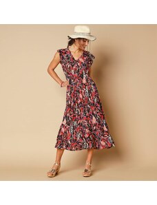 Blancheporte Dlouhé kreponové šaty s potiskem a volány modrá/růžová