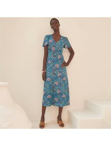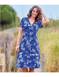Blancheporte Krátké rozšířené šaty s výstřihem do V a potiskem rostlin tyrkysová