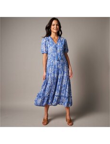 Blancheporte Dlouhé rozšířené šaty na knoflíky, kreponové s potiskem modrá