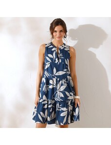 Blancheporte Krátké volánové šaty s etno potiskem indigo/režná