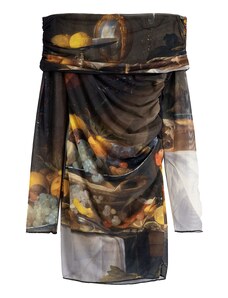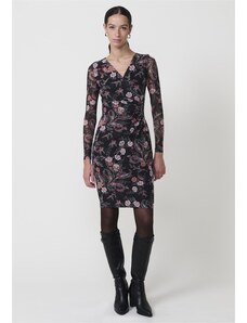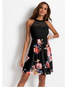 Bonprix Minišaty z jemné síťoviny s flockovým potiskem černá Žena