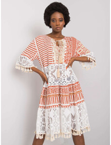 ITALY MODA Oranžové vzorované midi šaty s krajkou -orange Oranžová
