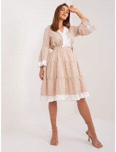 BASIC Béžové madeirové volánkové šaty --beige Béžová