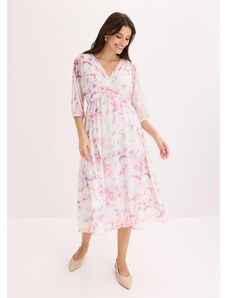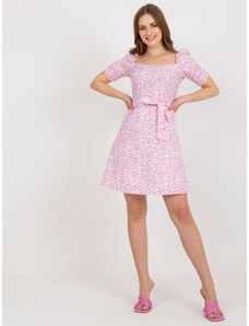 BASIC Bílo-růžové minišaty s květinovým potiskem a volánovými rukávy -white-pink Květinový vzor