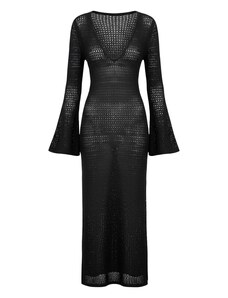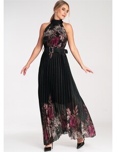 BASIC Černé dámské vzorované maxi šaty -black Vzory