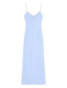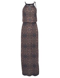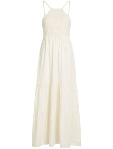 Numoco CHIARA dlouhé šaty na ramínka s kopertovým výstřihem a rozparkem šampaňsko-béžové s třpytem Béžová