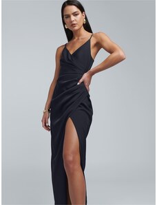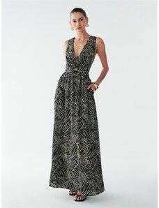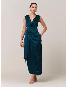 NUMOCO Tmavě zelené lesklé maxi šaty JULIET Tmavě zelená