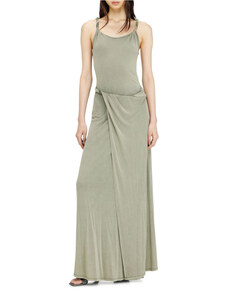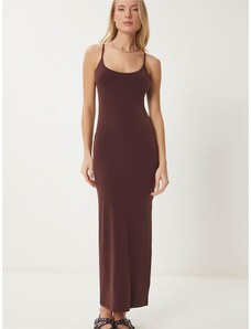 Numoco dlouhé šaty na ramínka s korzetovým vázáním a rozparkem lahvově zelené Tmavě zelená