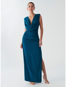 LENITIF Dlouhé šaty s volánovými rukávy Modrá