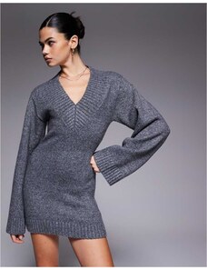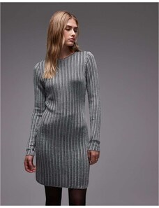 & Other Stories long sleeve rib jersey mini dress in black and silver