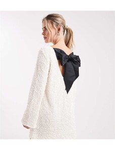 ONLY Petite sequin back detail bow mini dress in white