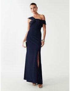 Dámské společenské šaty SOKY SOKA s perličkami a krajkou dlouhé tmavě modré - Tmavě modrá / XL - SOKY&SOKA