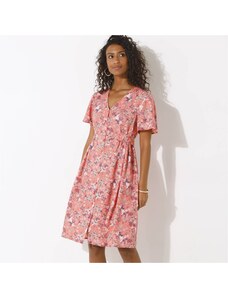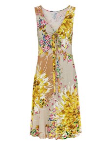 Blancheporte Krátké volánové šaty se žabičkovaným pasem a potiskem béžová/režná