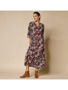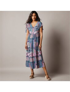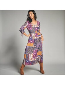 Blancheporte Dlouhé šaty s výstřihem do V a patchwork potiskem nám. modrá/šeříková
