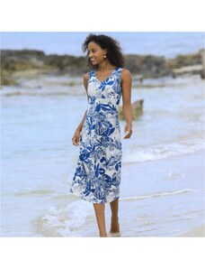 Blancheporte Rozšířené midi šaty bez rukávů, s potiskem režná/modrá