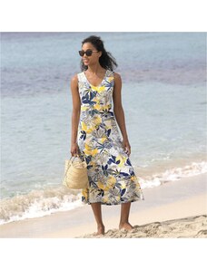 Blancheporte Rozšířené midi šaty bez rukávů, s potiskem modrá/žlutá
