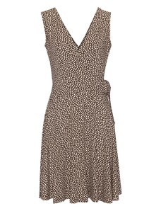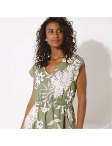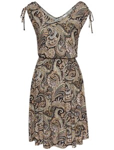 Blancheporte Krátké volánové šaty se žabičkovaným pasem a potiskem khaki/béžová