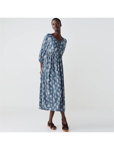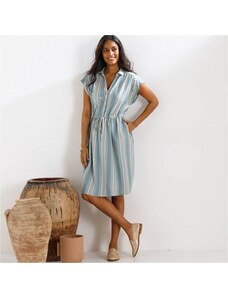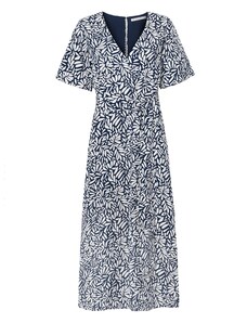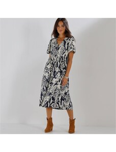 Blancheporte Midi šaty na knolfíky, s krátkými rukávy a etno potiskem indigo/režná