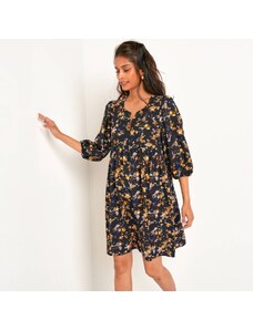 Blancheporte Krátké šaty s krátkými rukávy a potiskem režná/modrá