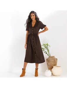 Blancheporte Jednobarevné midi šaty na knolfíky, s krátkými rukávy čokoládová