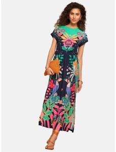 Blancheporte Rovné šaty s potiskem a rukávy k loktům smaragdová