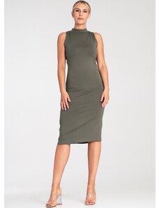 FIGL Olivové vypasované viskózové šaty bez rukávů Khaki
