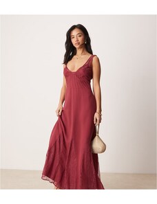 ASOS Petite ASOS DESIGN Petite lace and chiffon maxi dress with godets in raspberry-Multi