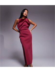 ASOS Petite ASOS DESIGN Petite one shoulder exaggerated twist midi dress in burgundy scuba-style fabric-Red