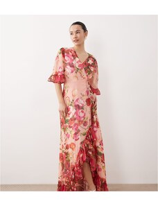 Hope & Ivy Petite wrap bell sleeve maxi dress in pink mixed floral