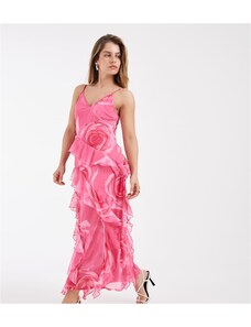 Vero Moda Petite Smilla Chiffon cami ruffle detail midi dress in pink tonal overblown rose print