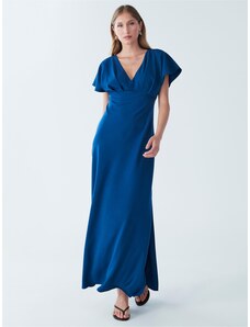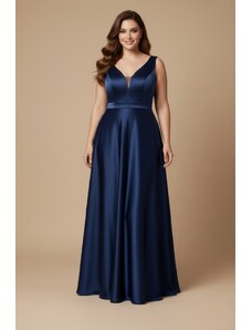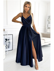NUMOCO Tmavě modré saténové šaty s rozparkem DIANE Tmavě modrá