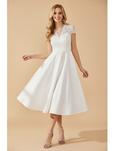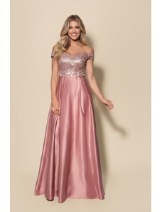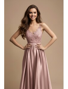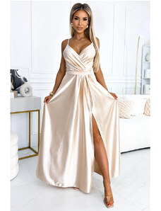 Numoco 411-14 CRYSTAL saténové dlouhé šaty s výstřihem - moka pěna