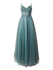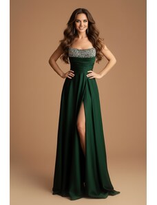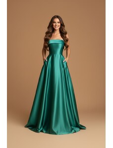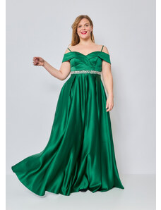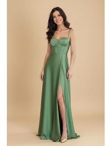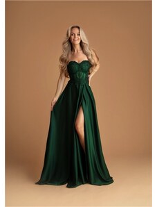 Eva & Lola Saténové šaty s krajkovým korzetem MADELEINE tmavě zelená