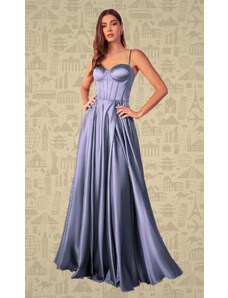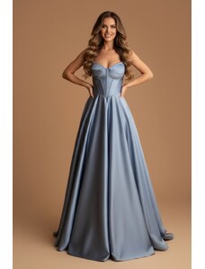 EVA & LOLA Společenské plesové saténové Šaty DORIANE světle modré Barva: Světle modrá,