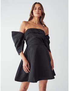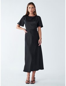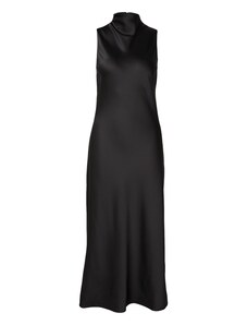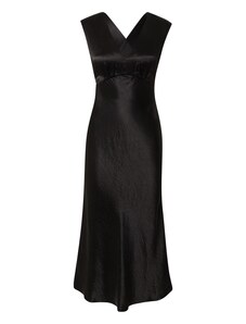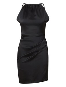 NUMOCO Černé saténové šaty s rozparkem DIANE Černá