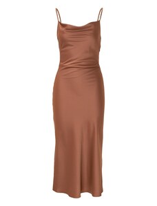 NUMOCO Čokoládově hnědé dlouhé lesklé šaty s výstřihem Hnědá