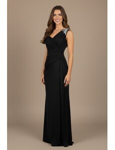 NUMOCO Černé dlouhé saténové šaty s výstřihem a rozparkem MONIQUE Černá