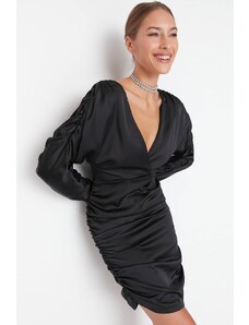 Lesklé šaty s krátkým rukávem, výstřihem a rozparkem na nohavicích Numoco