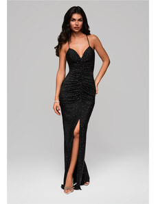 Dámské šaty se třpytky, výstřihem a rozparkem na nohavicích Numoco