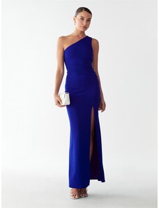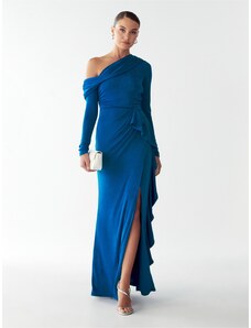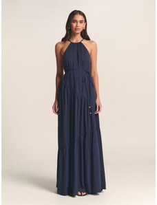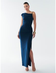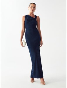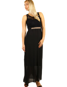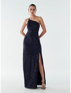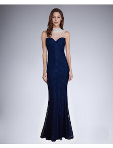 Dámské společenské šaty SOKY SOKA s krajkou a perličkami dlouhé tmavě modré - Tmavě modrá / XL - SOKY&SOKA