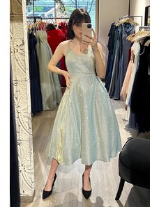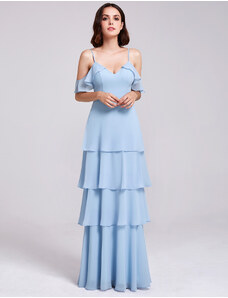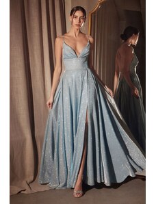 Dress by COOL Romantické světle modré třpytivé šněrovací šaty na galavečer