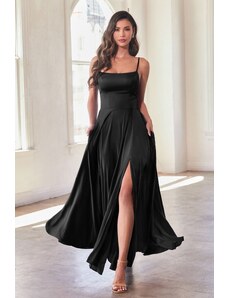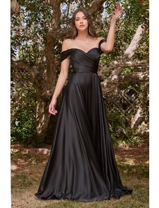 Dress by COOL Černé saténové šaty s odhalenými rameny ,,off shoulders,,