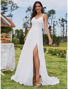 Ever Pretty Jednoduché bílé šaty s ozdobnými špagetovými ramínky