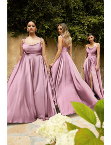 Dress by COOL Jemně růžové šaty do společnosti s kapsami a skrytým rozparkem