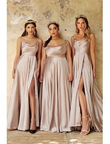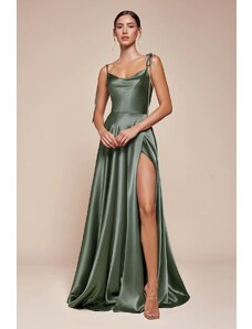 Dress by COOL Lesklé dlouhé družičkovské šaty v olivově zelené barvě